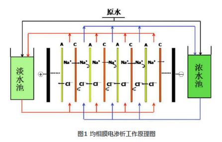 電滲析技術(shù)以電位差為推動(dòng)力,利用陰、陽(yáng)離子交換膜對(duì)陰、陽(yáng)離子的選擇透過(guò)性,實(shí)現(xiàn)溶液中呈離子狀態(tài)的溶質(zhì)與溶劑分離的物理化學(xué)過(guò)程。廣泛應(yīng)用于苦咸水或海水的淡化、無(wú)機(jī)鹽溶液濃縮,有機(jī)物脫鹽精制等。