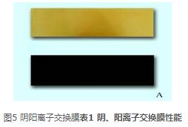 陽膜為苯乙烯系磺酸型均相陽離子交換膜(JCM-Ⅱ)(圖5A下);陰膜為苯乙烯季銨型均相陰離子交換膜(JAM-Ⅱ) (圖5A上);我公司自主研發(fā)生產(chǎn)。在外加直流電場(chǎng)力的作用下,陰膜只讓陰離子通過而阻擋陽離子,陽膜只讓陽離子通過而阻擋陰離子,它們具有耐強(qiáng)酸、強(qiáng)堿,柔韌度強(qiáng),機(jī)械強(qiáng)度高,使用壽命長(zhǎng)等特點(diǎn)。各膜性能指標(biāo)如下: